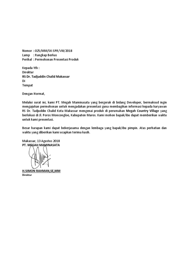 Contoh Surat Mohon Spr